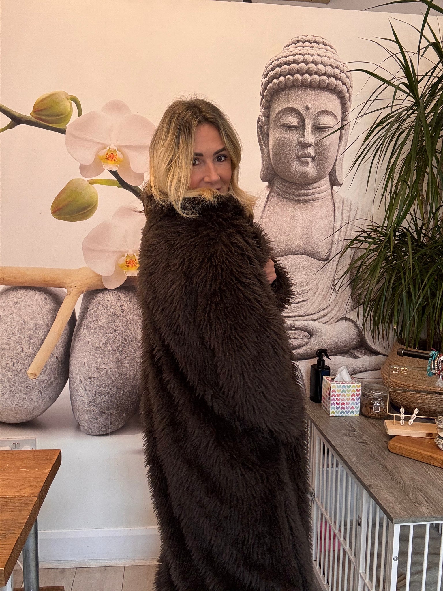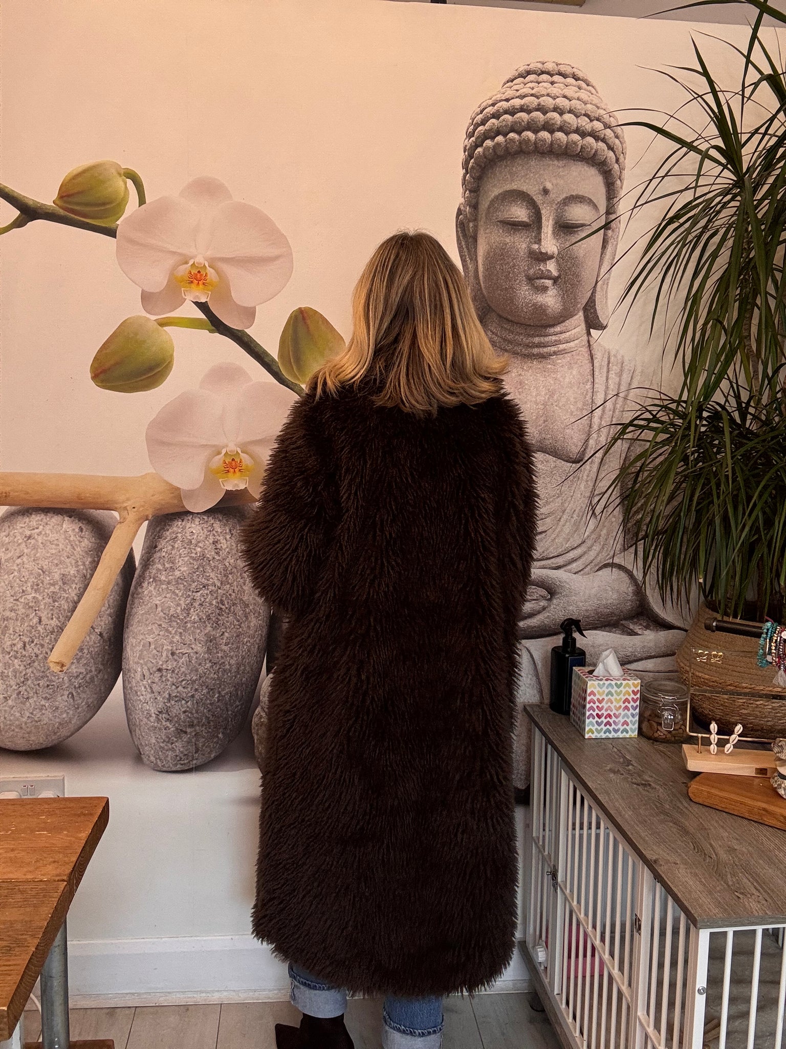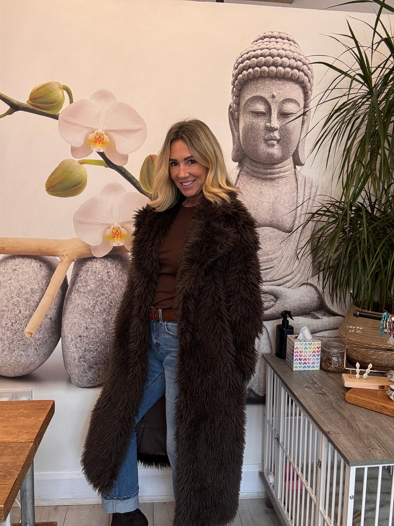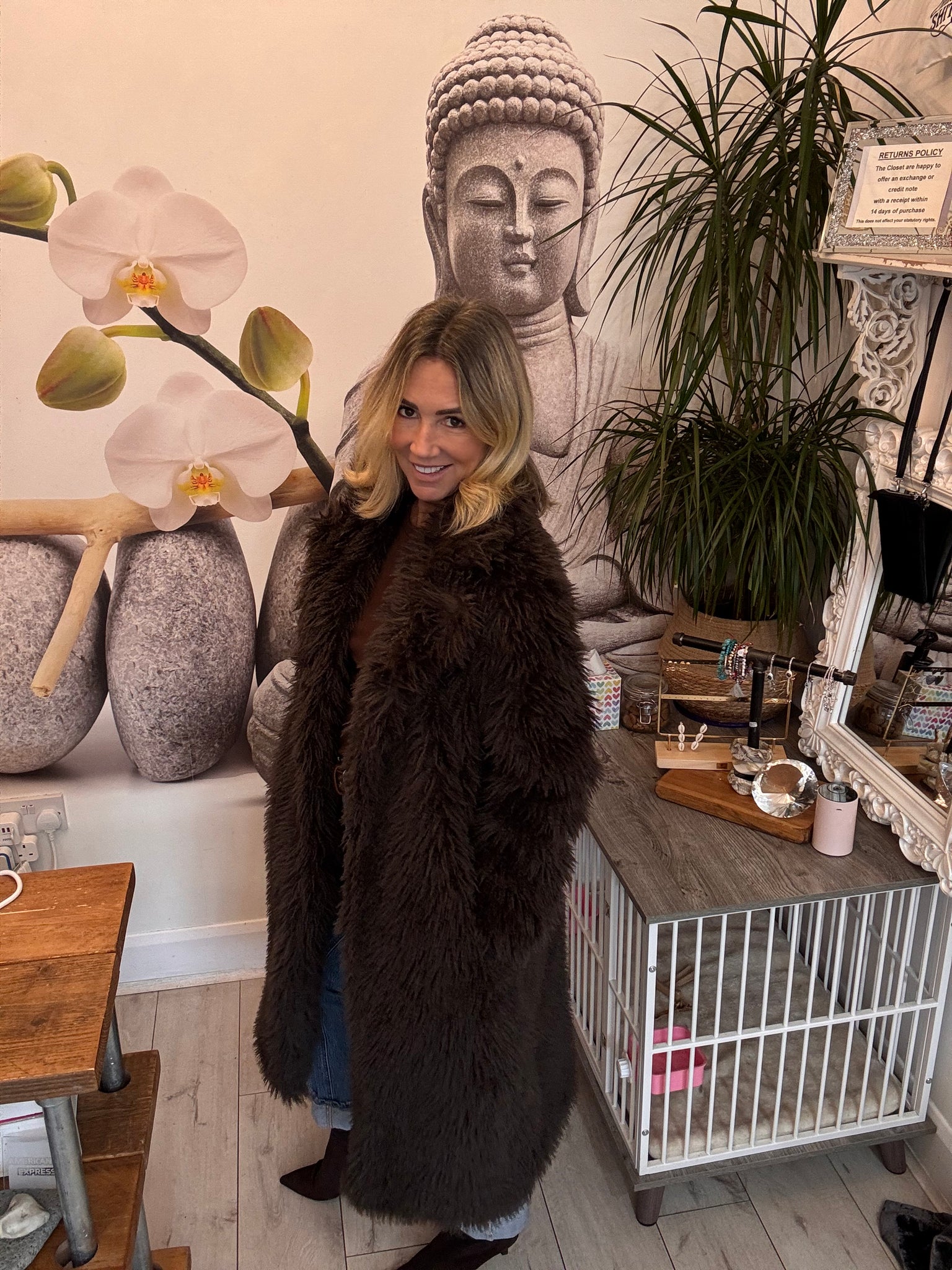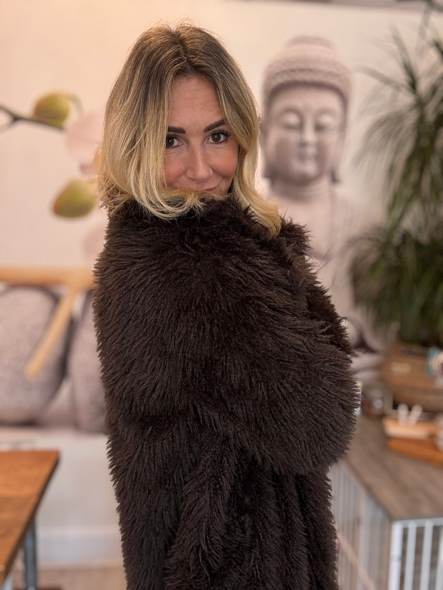 Shaggy chocolate long coat