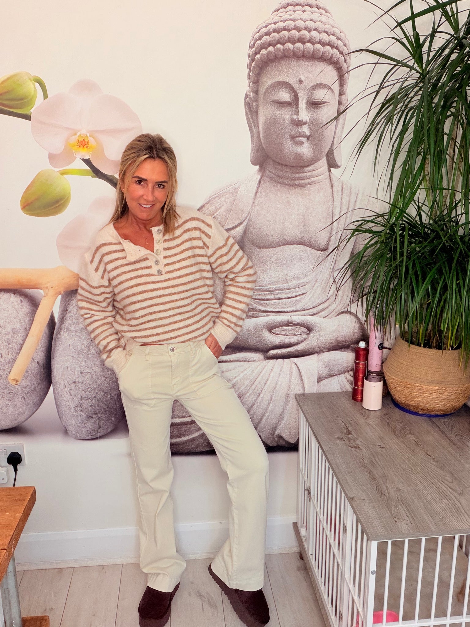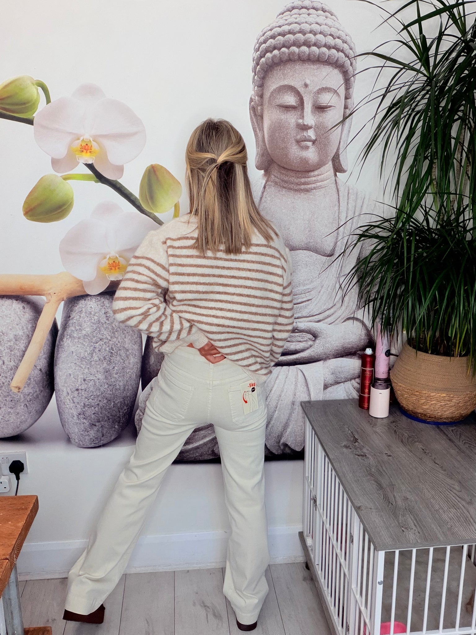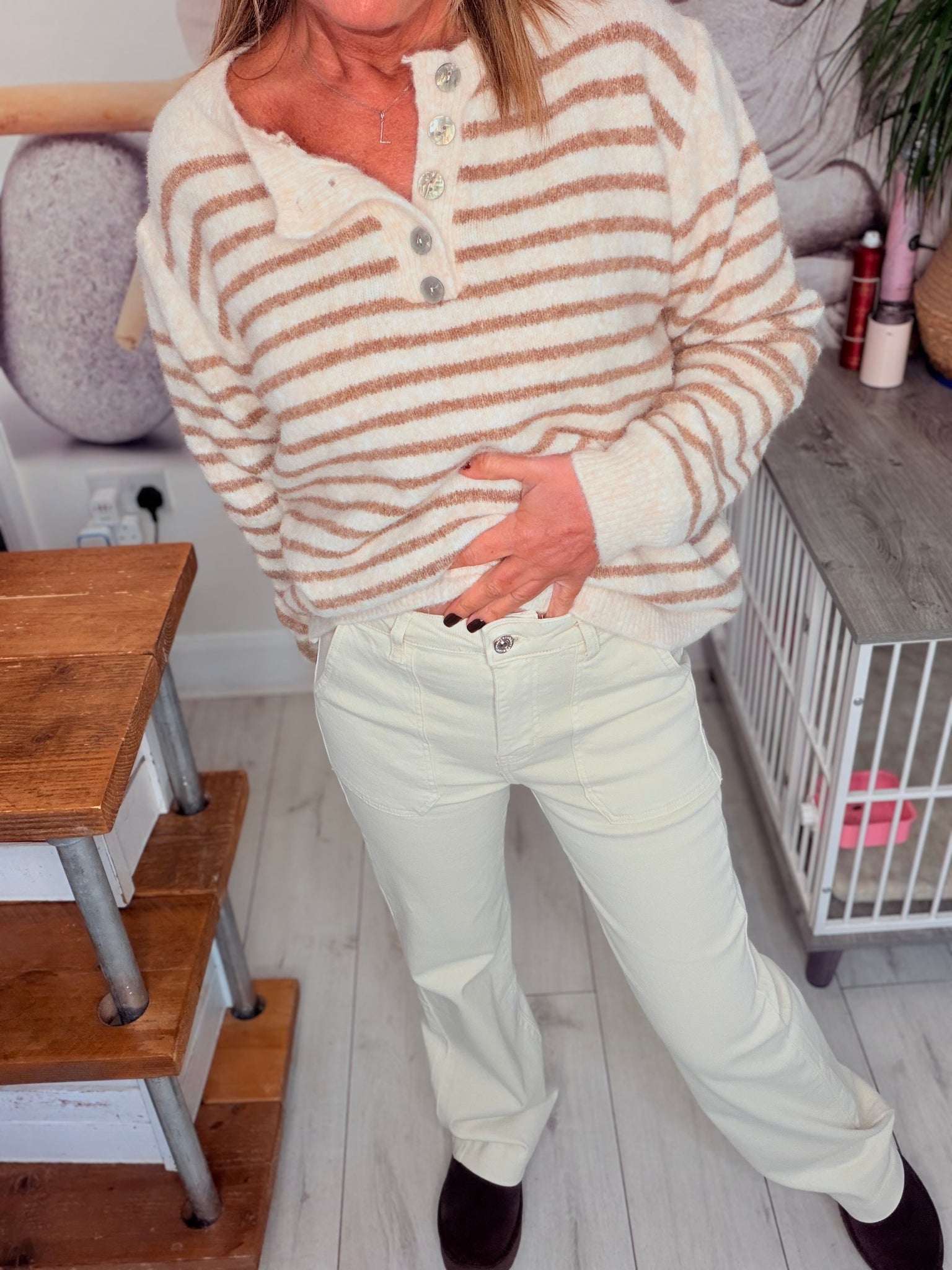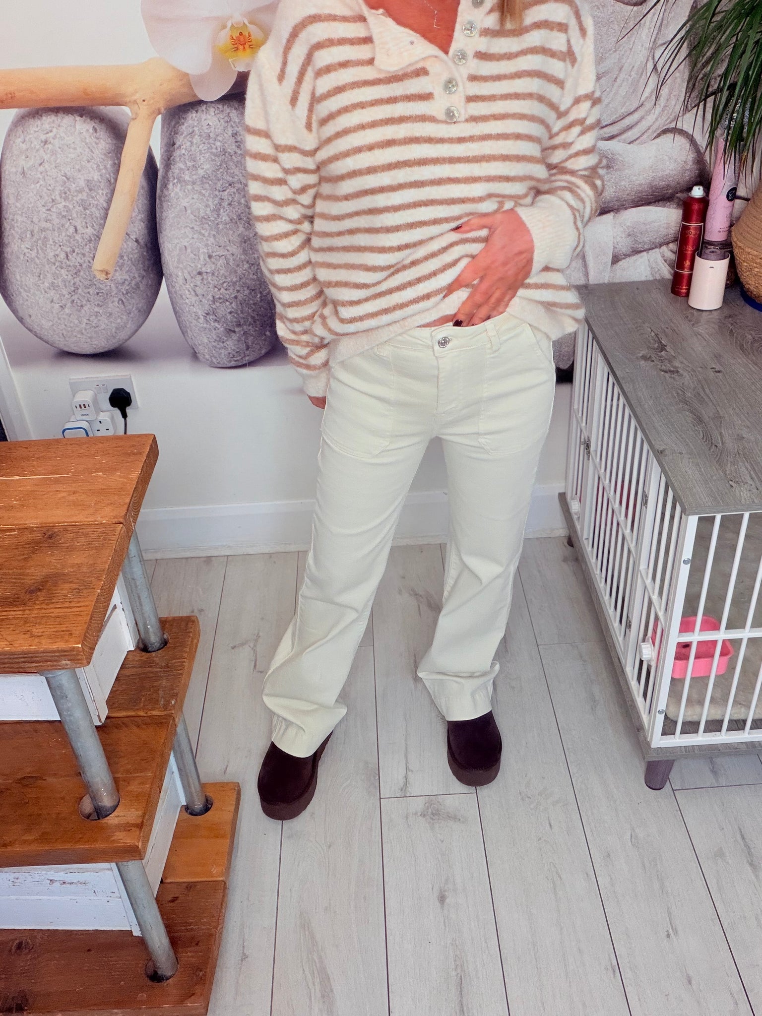 Carpenter pocket stretch cream jeansSized