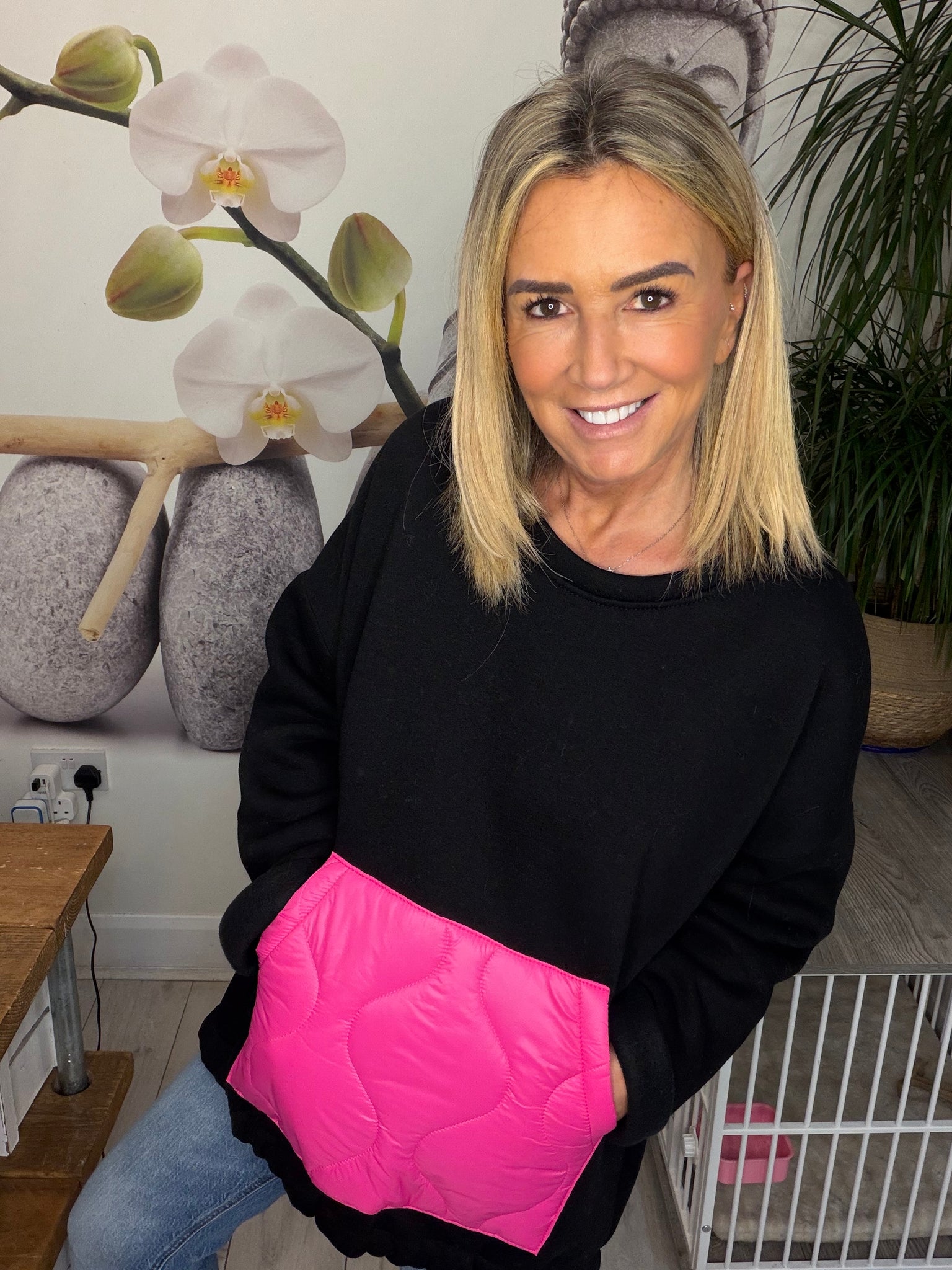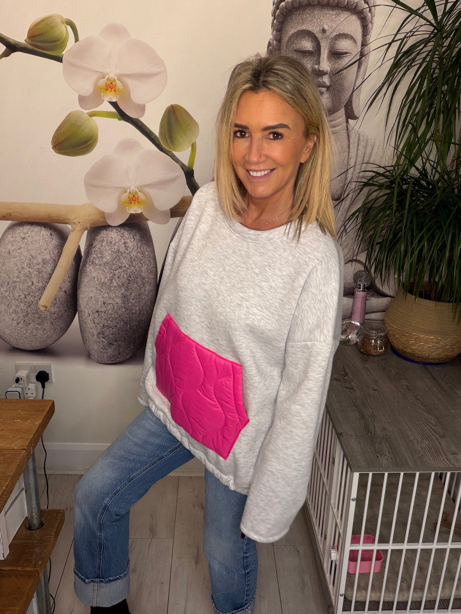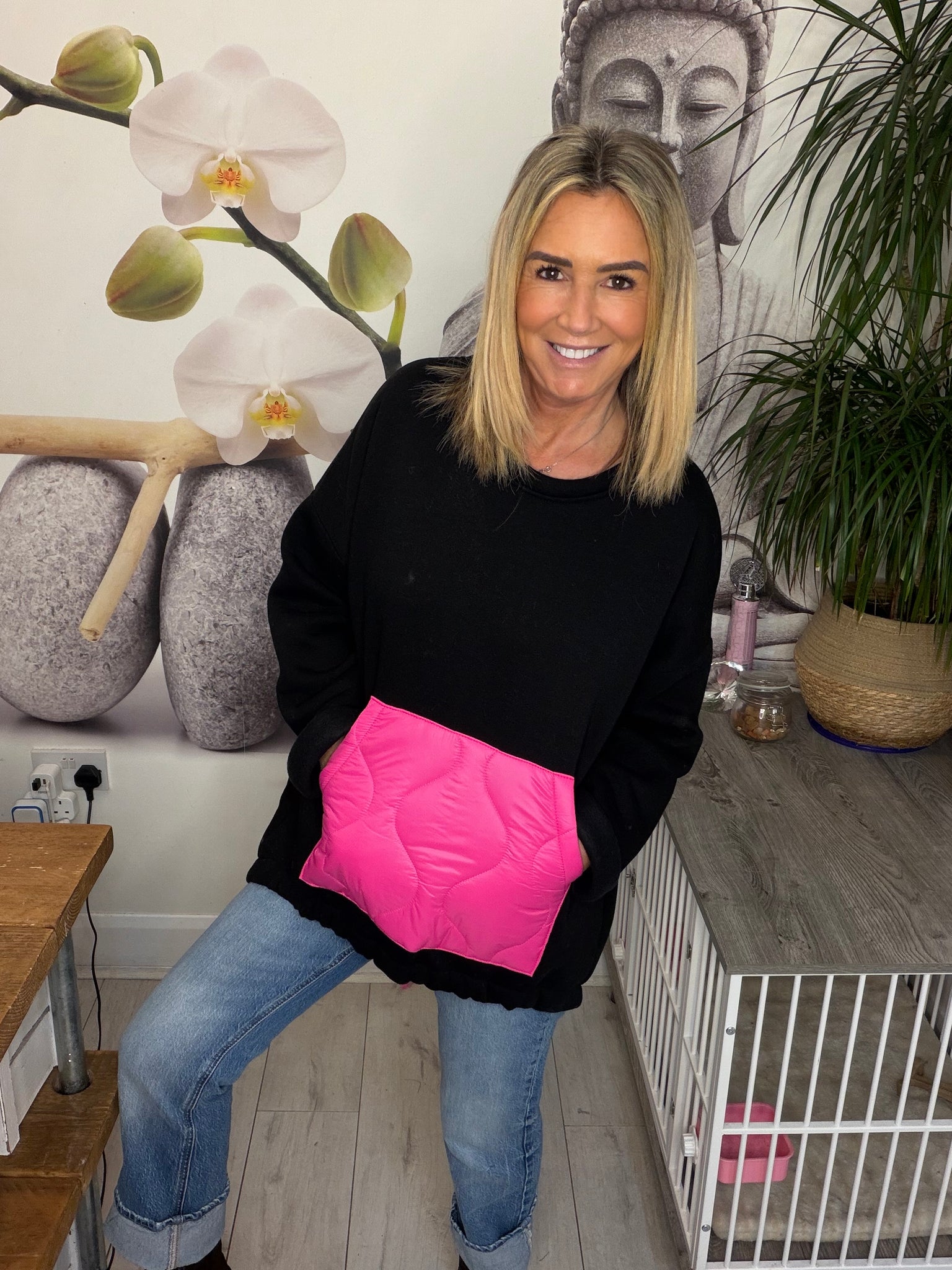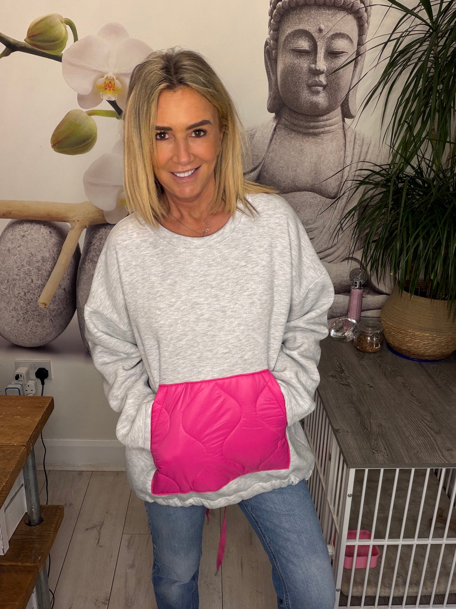 Quilt Kangaroo pocket sweatshirt with drawstring detail on the backOne size fits 8-14