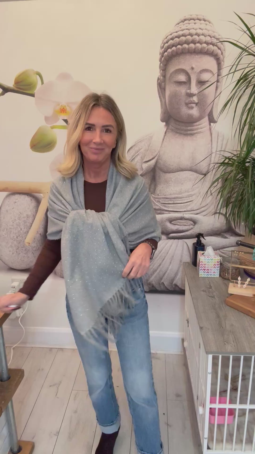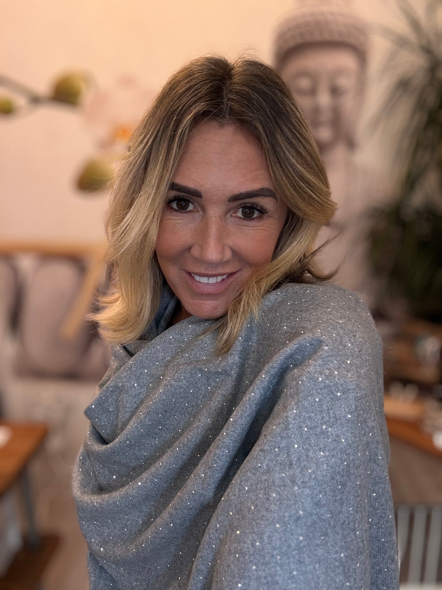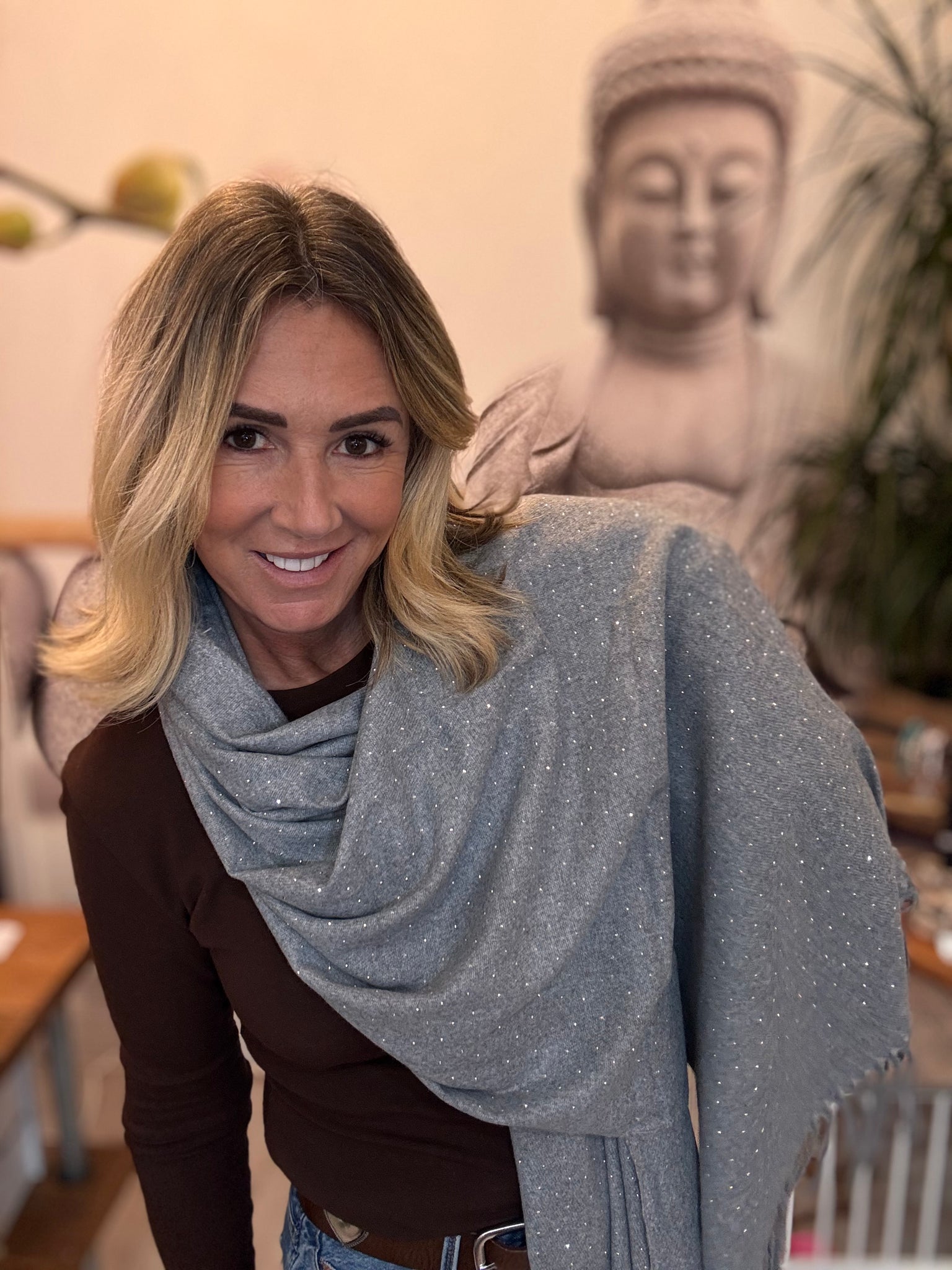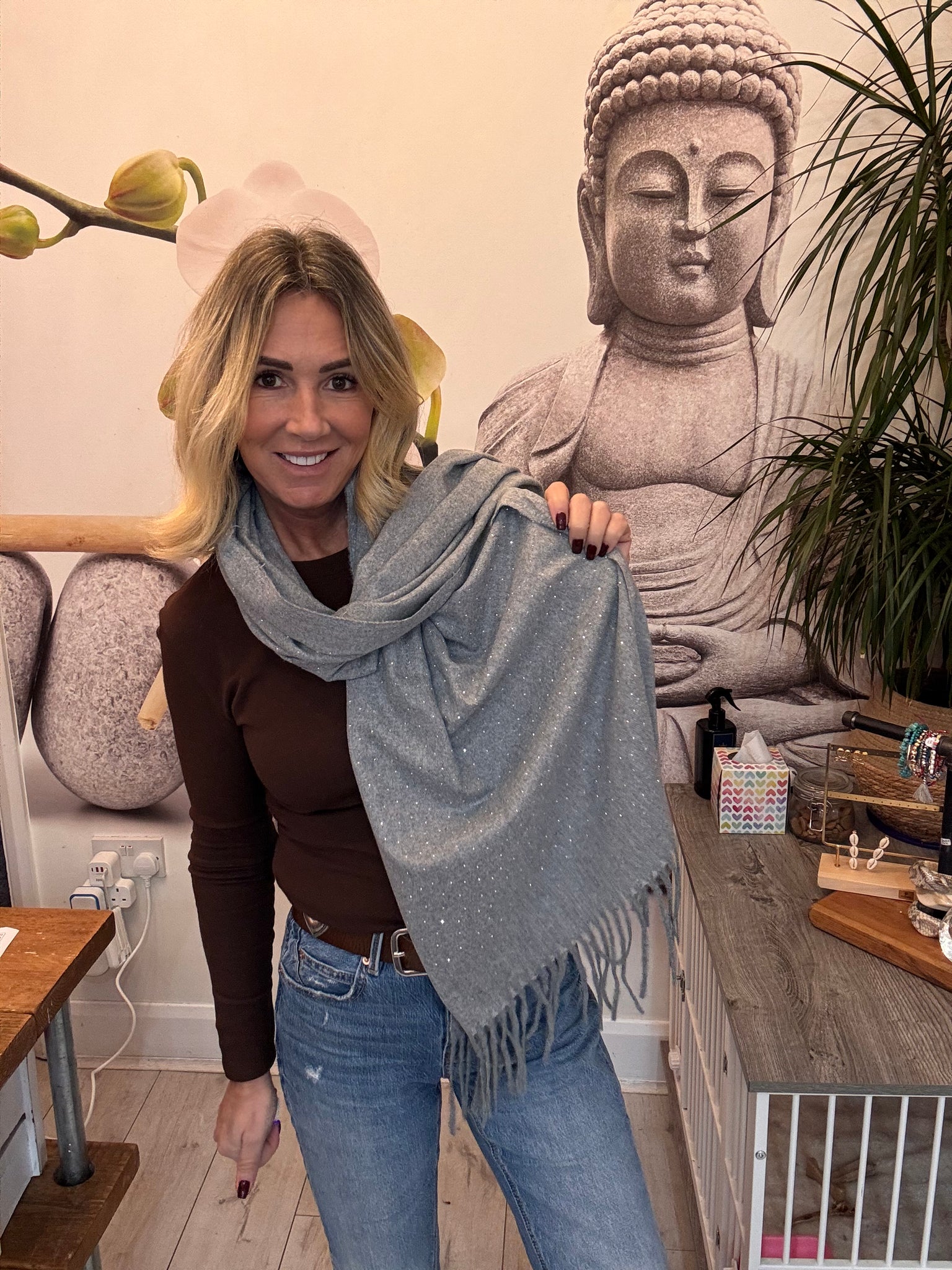 Grey scarf with sequin diamanté design