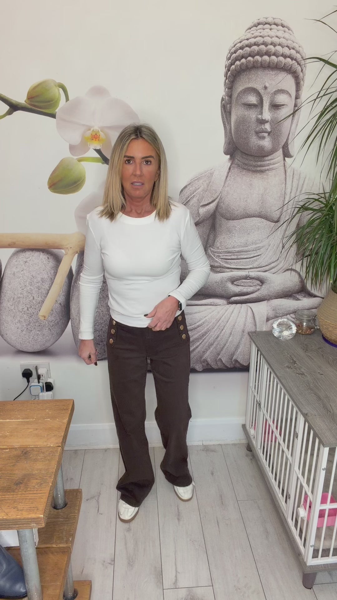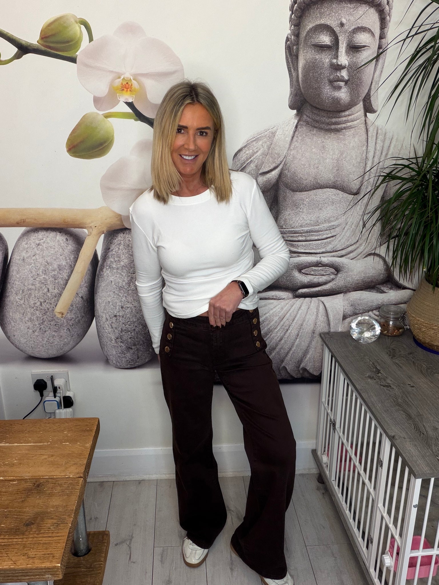 Stretch jeans with gold button detail